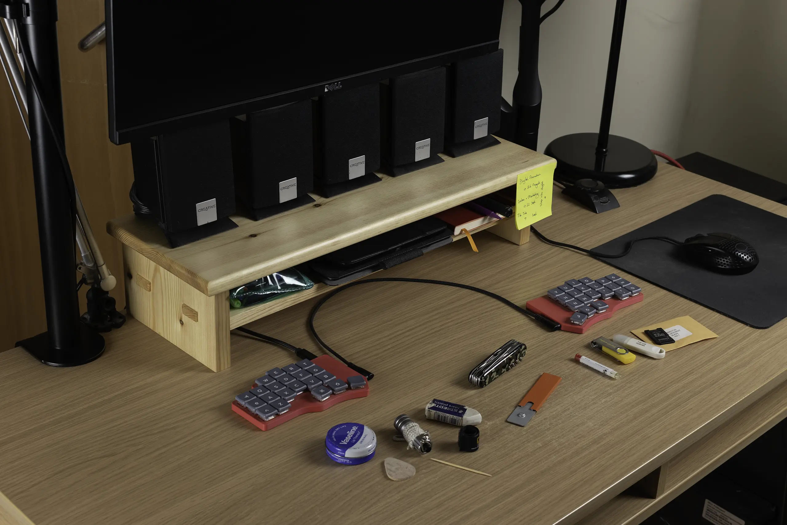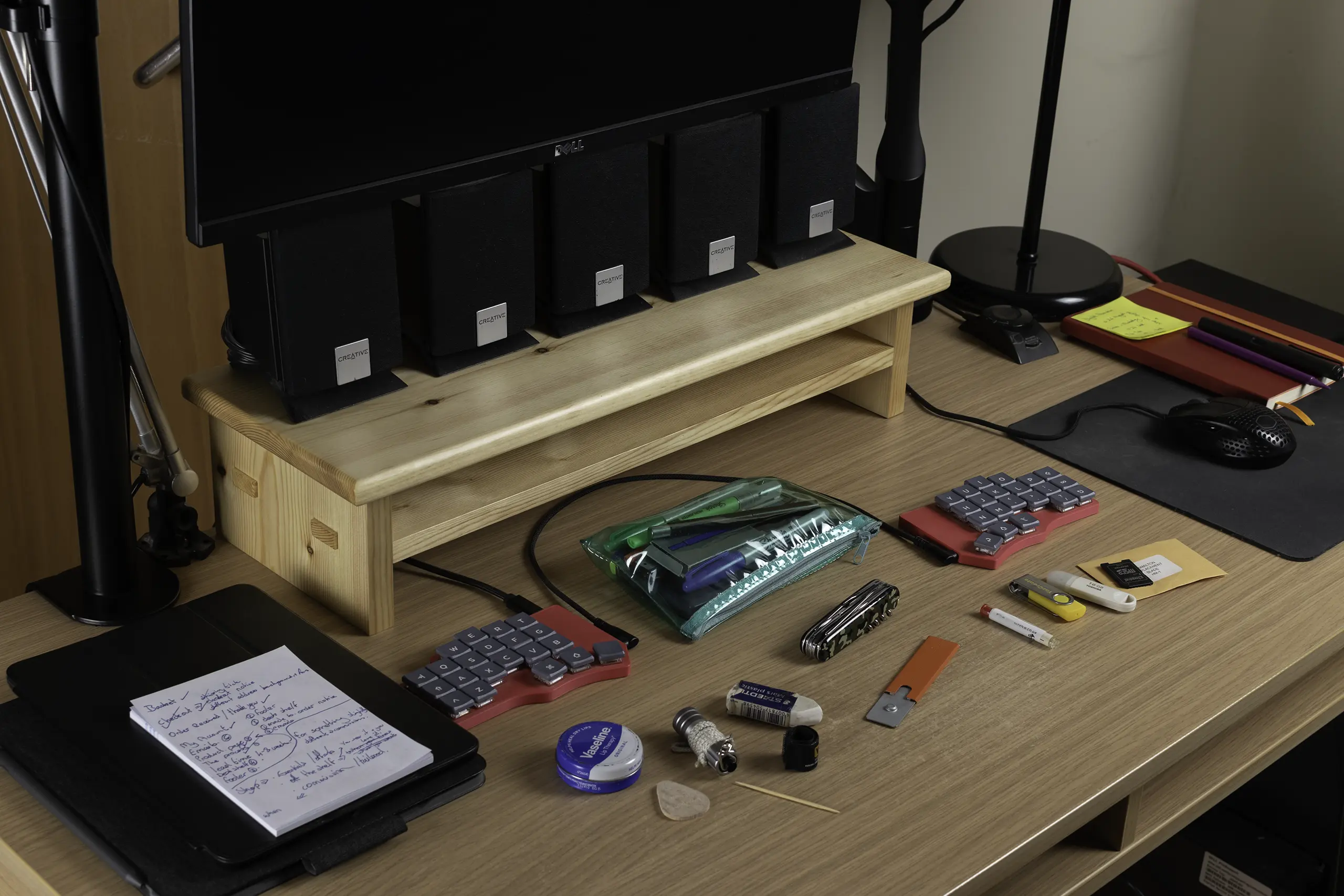 I designed this desk shelf with elegance and balance in mind; a piece to complement your workspace, not compete against it. The lines are crisp, clean, and quietly modern. Mine has become the central hub of my own desk, lifting my screen to a comfortable height and creating space for notebooks, tools, and a clear mind.