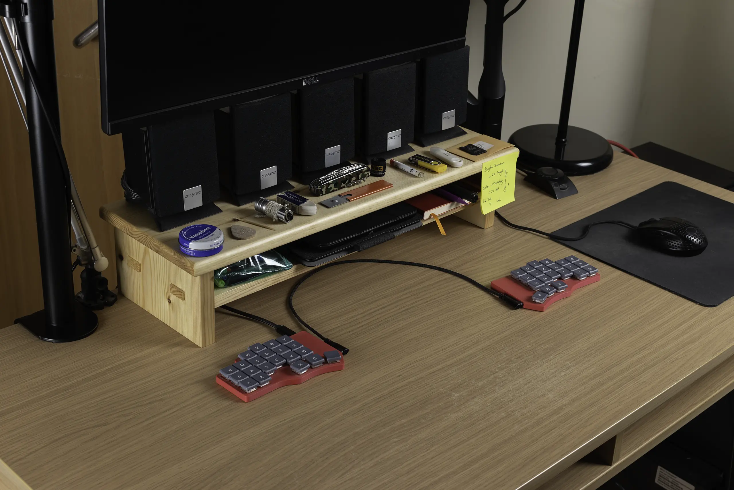 Bring order, clarity, and craftsmanship to your workspace. This handmade desk shelf is designed to raise your monitor to the perfect height while adding storage space beneath for notebooks, a keyboard, and everyday essentials.