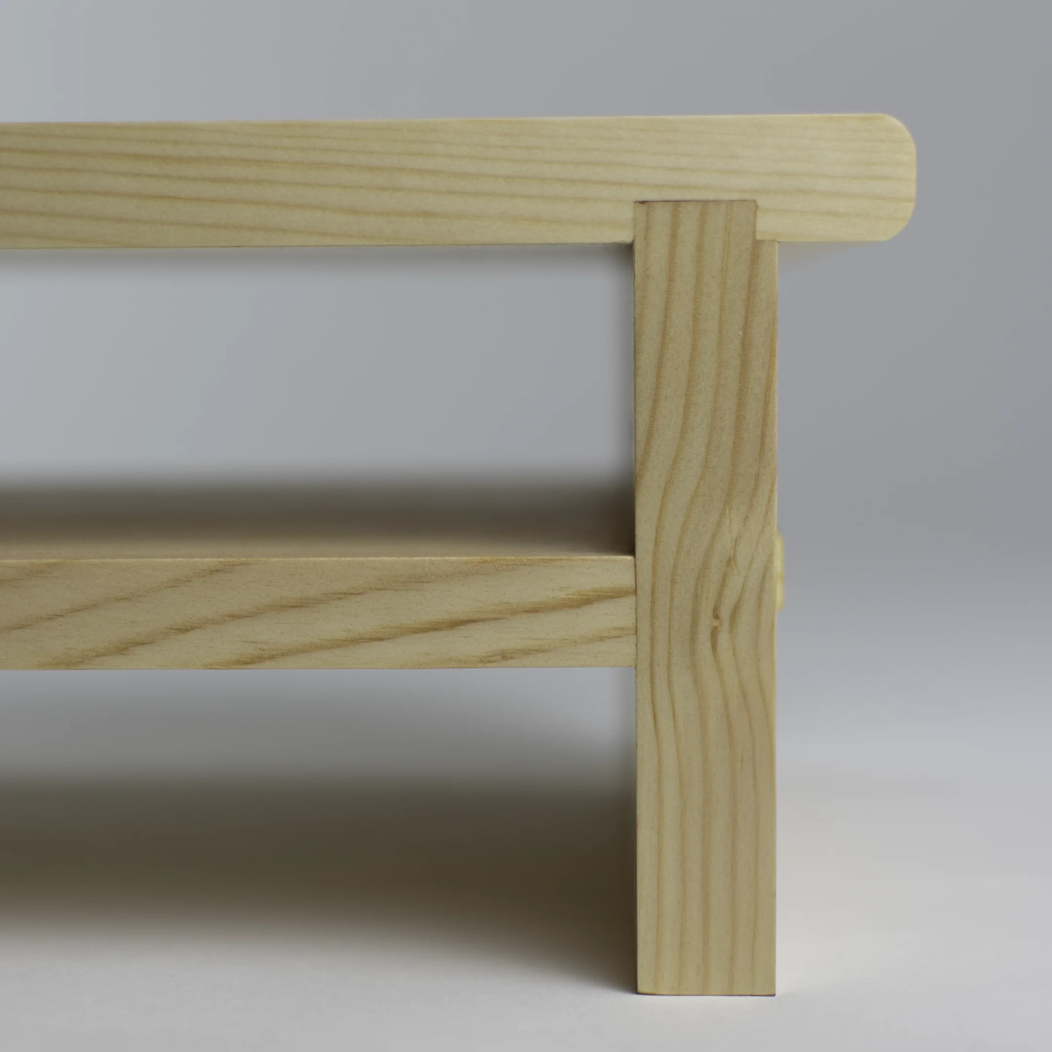 I chose pine for its gentle versatility, a timber that feels at home in almost any setting. Its subtle grain flows softly, and brings a natural calm. Each occasional knot adds a touch of warmth and individuality. Every piece is unique, just like the person who works beside it.